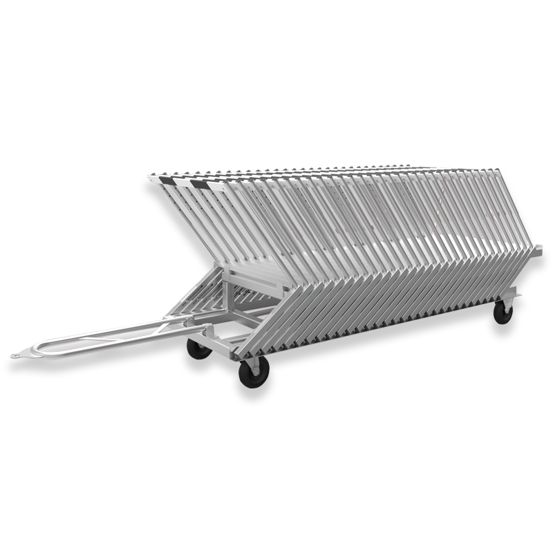Ob für das Training oder für den Wettkampf eine ordentliche Transportmöglichkeit. Mit dem Alu-Hürdentransportwagen ist eine einfache und platzsparende Aufbewahrung von bis zu 30 Hürden gewährleistet. Die verschweisste Konstruktion aus Aluminium ist mit einer Zugdeichsel für Hand- und Anhängerbetrieb ausgestattet und robust. Der Transportwagen ist dennoch sehr leichtgängig durch die luftbereiften Räder mit einer Einzelradaufhängung. Da der Wagen von hinten begehbar ist, ist das Be- und Entladen sehr einfach.