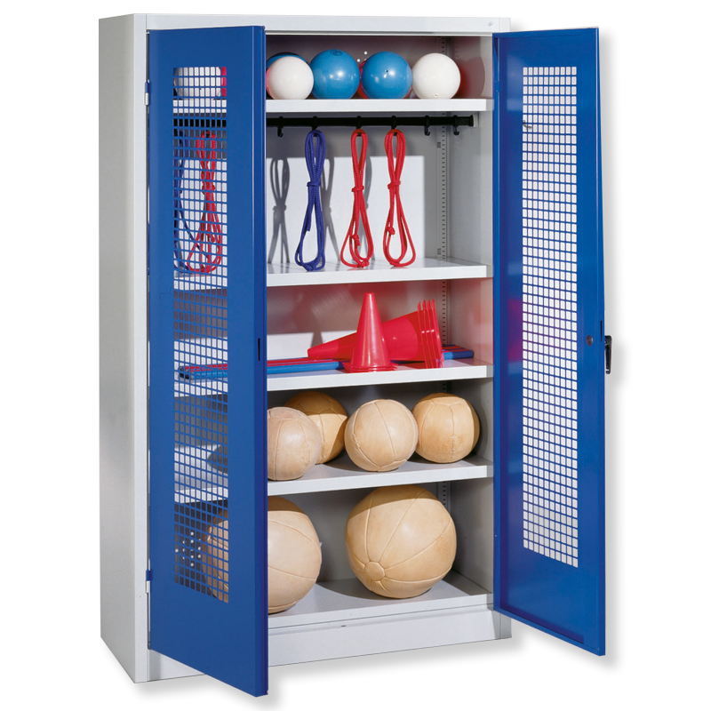 Ballschrank mit Lochblech-Flügeltüren