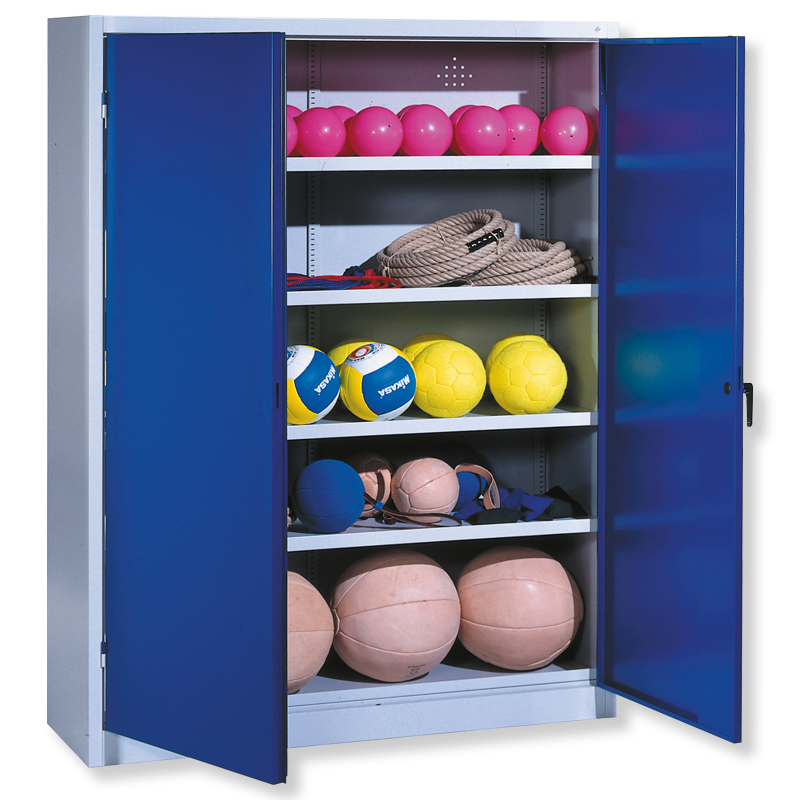 - 195 x 150 x 50 cm Schrank für Bälle aller Art, mit 5 verstellbaren Tablaren.