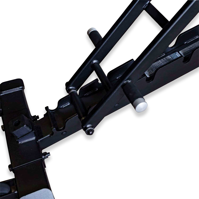 Einfaches Bewegen der Hantelbank durch praktischen Handgriff und Transportrollen.
