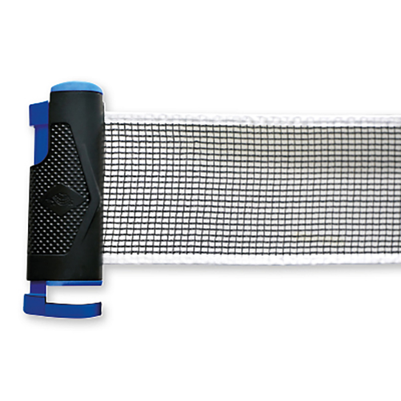 Das Donic-Schildkröt® Tischtennisnetz FLEXNET ist der ideale Begleiter für eine spontane Partie Tischtennis, denn es kann an allen handelsüblichen Tischtennisplatten sofort und ohne Mühe befestigt werden. Selbst an normalen Büro- oder Schultischen kann das Netz befestigt werden, sofern die Dicke des Tisches es zulässt. Das selbstspannende Nylonnetz mit automatischem Aufrollmechanismus ist für jeden Tisch mit einer maximalen Tischbreite 175 cm und maximaler Tischstärke von 4 cm geeignet. Dank des Klemmsystems ist eine schnelle Montage gewährleistet. Das Tischtennis-Netz wird inkl. verschliessbarem Carrybag geliefert.