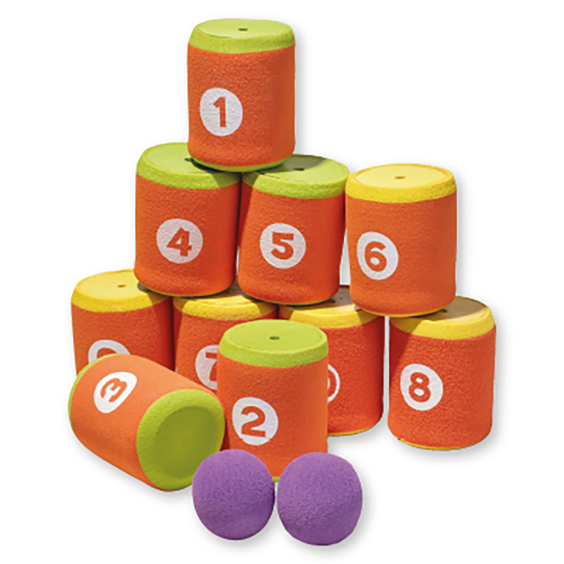 Dosenwerfen ohne Scheppern. Das altbekannte Spiel, das weder auf dem Volksfest noch im Kindergarten, zum Kindergeburtstag oder in der Vorschule fehlen darf. Mit Spass und auf spielerische Art und Weise wird Wurftechnik und Konzentration bei den Kindern gefördert. Dank der weichen Ummantelung aus Schaumgummi fallen die Dosen ohne grossen Lärm um. Das schont die Nerven von Kindergärtnerinnen und Erwachsenen. Dosenwerfen macht Kindern Spass und ist Drinnen und Draussen geeignet.