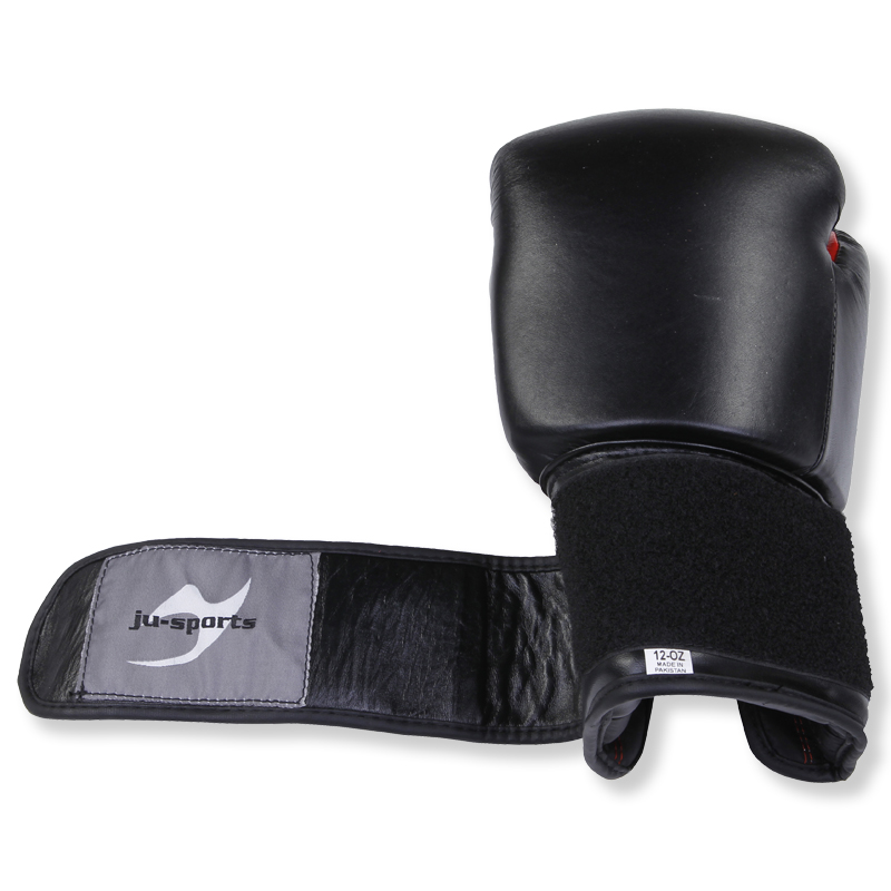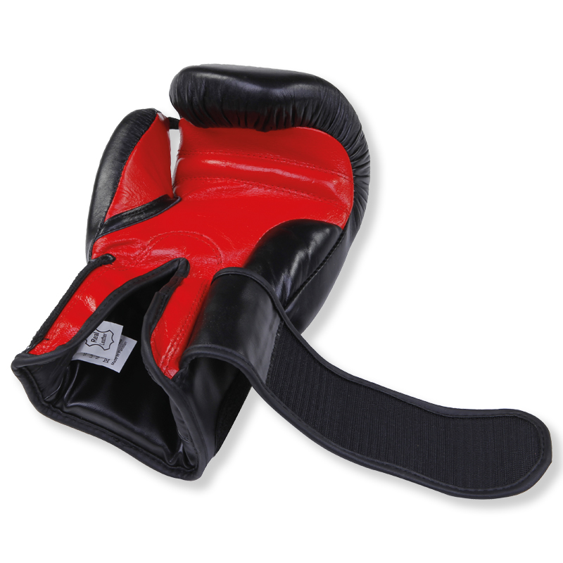 Klassischer Boxhandschuh aus echtem Rindsleder. Die Boxhandschuhe sind mit einem komfortablen, umlaufenden Klettverschluss am Handgelenk und Daumenschutz ausgestattet. Das sorgt für eine gute Passform und einen stützenden und stabilisierenden Effekt beim täglichen Training. Zudem garantiert der Daumensteg für die notwendige Sicherheit. Die Box-Handschuhe eignen sich natürlich auch für das Training am Boxsack. Die Handschuhe sind als Wettkampf-Boxhandschuh in 10 Unzen für das professionelle Boxen im Boxring oder als Sparrings-Handschuh für das Training am Boxsack, am Punching Ball oder am Speedball Wandapparat in 12 Unzen erhältlich. Die höchst funktionellen Boxhandschuhe verfügen über eine schwarze Aussenhand, die Innenhand ist rot.