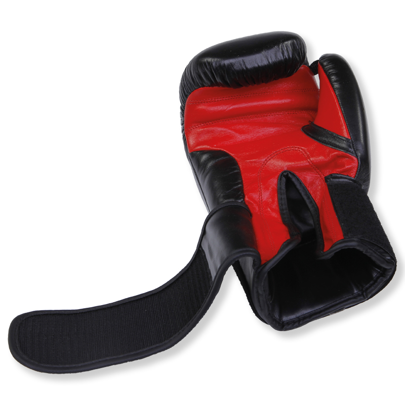 Klassischer Boxhandschuh aus echtem Rindsleder. Die Boxhandschuhe sind mit einem komfortablen, umlaufenden Klettverschluss am Handgelenk und Daumenschutz ausgestattet. Das sorgt für eine gute Passform und einen stützenden und stabilisierenden Effekt beim täglichen Training. Zudem garantiert der Daumensteg für die notwendige Sicherheit. Die Box-Handschuhe eignen sich natürlich auch für das Training am Boxsack. Die Handschuhe sind als Wettkampf-Boxhandschuh in 10 Unzen für das professionelle Boxen im Boxring oder als Sparrings-Handschuh für das Training am Boxsack, am Punching Ball oder am Speedball Wandapparat in 12 Unzen erhältlich. Die höchst funktionellen Boxhandschuhe verfügen über eine schwarze Aussenhand, die Innenhand ist rot.