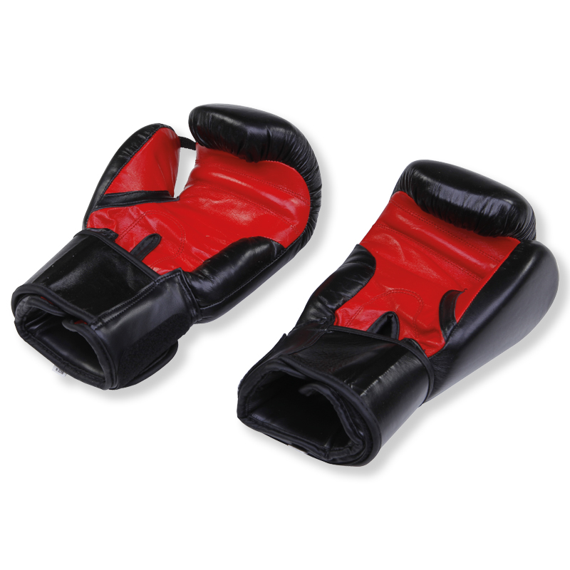 Klassischer Boxhandschuh aus echtem Rindsleder. Die Boxhandschuhe sind mit einem komfortablen, umlaufenden Klettverschluss am Handgelenk und Daumenschutz ausgestattet. Das sorgt für eine gute Passform und einen stützenden und stabilisierenden Effekt beim täglichen Training. Zudem garantiert der Daumensteg für die notwendige Sicherheit. Die Box-Handschuhe eignen sich natürlich auch für das Training am Boxsack. Die Handschuhe sind als Wettkampf-Boxhandschuh in 10 Unzen für das professionelle Boxen im Boxring oder als Sparrings-Handschuh für das Training am Boxsack, am Punching Ball oder am Speedball Wandapparat in 12 Unzen erhältlich. Die höchst funktionellen Boxhandschuhe verfügen über eine schwarze Aussenhand, die Innenhand ist rot.
