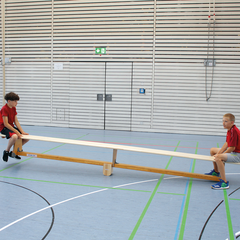 Kinder können einfach hin und her wippen oder mit etwas mehr Übung über die wippende Langbank laufen. In beiden Fällen erhält man Abwechslung im Kinderturnen oder im Kinderturnen. Dank der gummierten Ablagefläche verhindert es ein Rutschen der Turnbank.