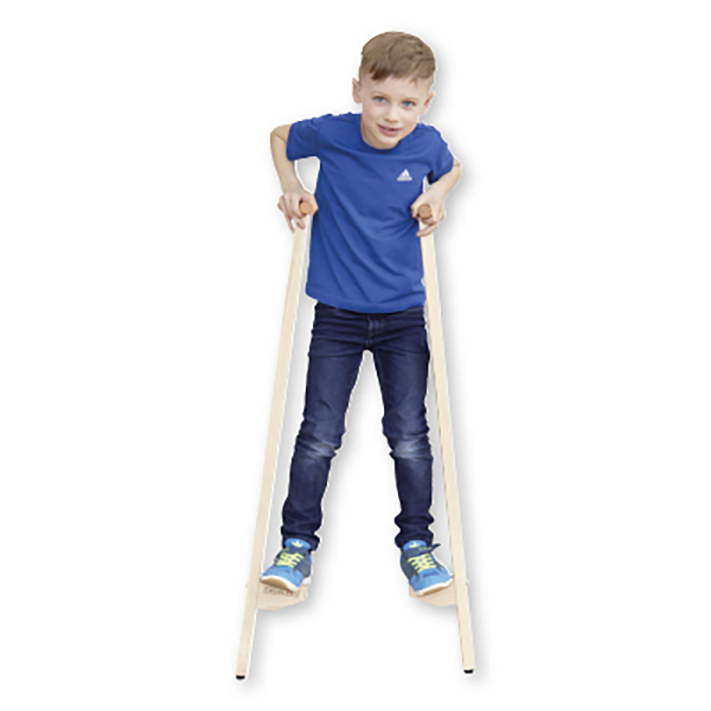 Das Gehen auf den Holzstelzen fördert Balance und Geschicklichkeit bei Kindern und Erwachsenen. Durch die höhenverstellbaren, einschraubbaren Stelzenbacken lässt sich der Schwierigkeitsgrad beliebig verändern. Die Holzstelzen sind aus massivem Buchenholz bis max. 80 kg belastbar. Die ergonomisch abgerundeten Stangen lassen sich sehr gut greifen. Nichtfärbende Gummipuffer sorgen für die notwendige Sicherheit und ermöglichen den Stelzenlauf sowohl in der Turnhalle als auch auf dem Pausenhof. Stelzen eignen sich für viele Geschicklichkeitsspiele zum Durchlaufen spezieller Parcours oder beim Staffellauf gegeneinander.