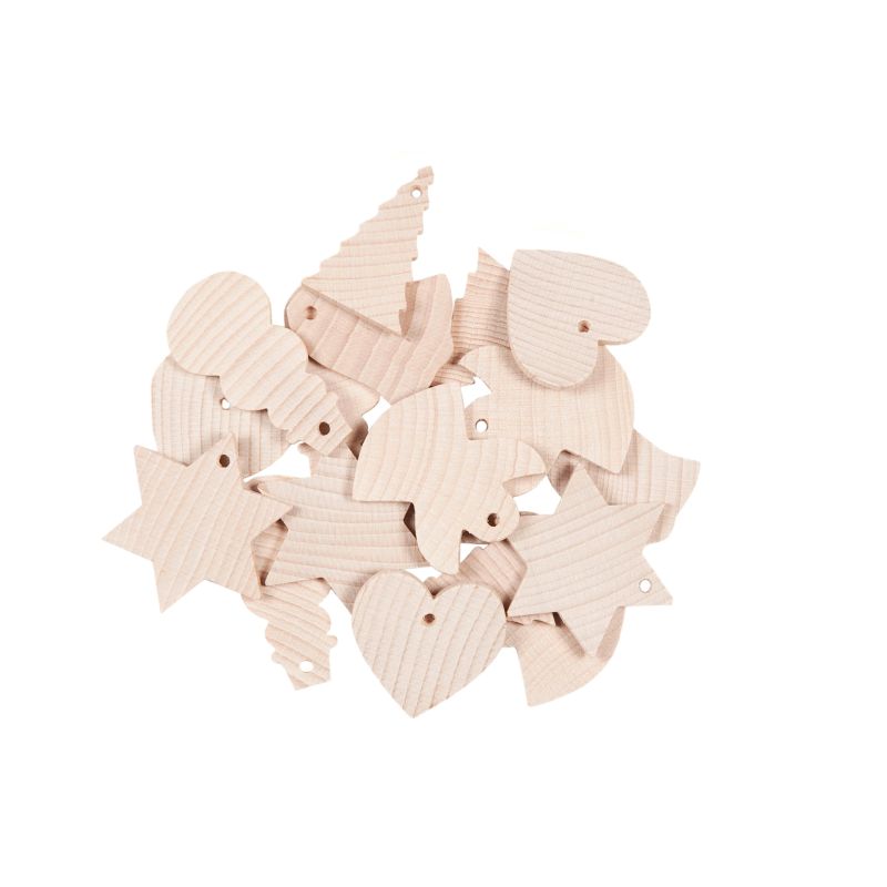 - 18 Anhänger aus Buchenholz zum Thema Weihnachten
