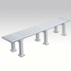 Die Kunststoffsitzbänke ohne Lehne werden gerne auf Tennisplätzen eingesetzt. Die Sitzbank ist aus robustem Kunststoff gefertigt und besitzt 2 (bzw. 3 bei 200 cm Länge) Fuss-Paare aus Vollkunststoff, sowie 5 Latten aus Mehrkammerprofil. Da die Sitzbank keine Lehne hat, kann sie beidseitig verwendet werden. Die Kunststoffsitzbank ist wetterfest, von hoher Qualität und hat einen hohen Sitzkomfort.