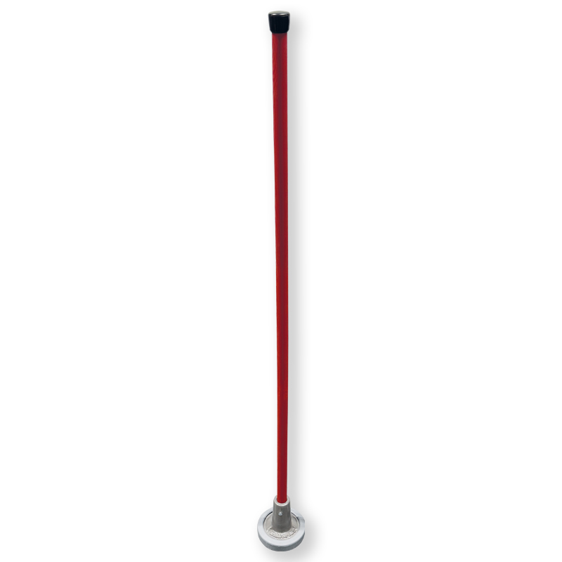 Aus Holz, mit einem Gusseisenfuss und einer Gummigalosche, ideal für den Einsatz in der Halle. Die Gummigalosche und die Gummikappe bestehen aus nichtfärbendem Gummi.