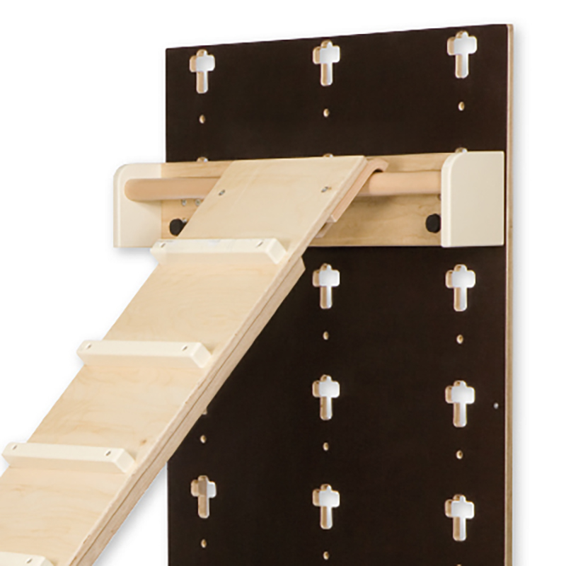 Unser Allroundtalent der Multi-Adapter ist eine einzelne Holzsprosse, die sich zum Einhängen von Kletternetz, Rutsche oder Leiter eignet und auch als Haltestange verwendet werden kann. Durch die Höhenverstellbarkeit eignet sie sich als vollständiger Ersatz einer Sprossenwand.