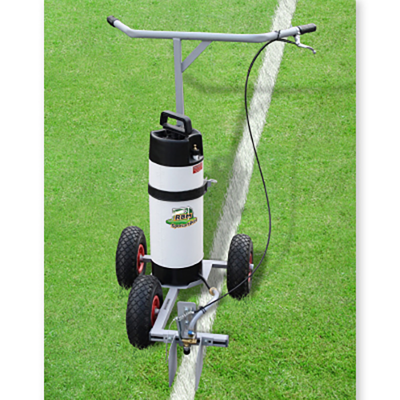 Mit 3 grossen luftbereiften Ballonrädern. Für wasserlösliche, umweltfreundliche Farbe. Farb-Druckbehälter 9 L Füllmenge, mit Handpumpe, Sprüheinrichtung mit Flachstrahldüse, Handhebelbedienung. Linienbreite einstellbar auf 5 und 12 cm.