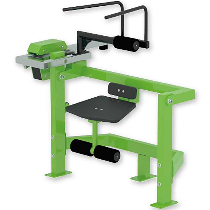 Outdoor Fitnessgerät in solider Bauweise, mit spezieller Beschichtung und Laufschiene aus Edelstahl für eine hohe Robustheit und Langlebigkeit. Der Bauchmuskeltrainer beansprucht gezielt die Bauch- und Rumpfmuskulatur. Durch eine Anpassung der Sitzposition können auch die schrägen Bauchmuskeln trainiert werden.