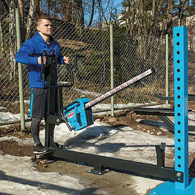 Die Gewichtsbelastung ist durch einen verstellbaren Gewichtsschlitten zwischen 20-70 kg individuell regulierbar. Ein Griffbügel mit verschiedenen Griffpositionen ermöglicht eine angenehme Hand- und Armhaltung beim Trainieren.