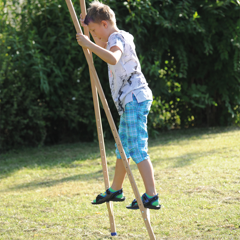 Die originalen Pedalo® Holzstelzen werden seit über 40 Jahren in hoher Qualität gefertigt und bieten maximale Stabilität und Belastbarkeit. Sie sind in verschiedenen Längen erhältlich und eignen sich für Kinder ab 5 Jahren bis hin zu Erwachsenen. Dank der verstellbaren Fussrasten und der ergonomischen Griffigkeit der Holme lässt sich der Schwierigkeitsgrad individuell an das Können des Nutzers anpassen. Die Antirutsch-Gummikappen sorgen für sicheren Halt und ermöglichen sowohl den Innen- als auch den Ausseneinsatz. Die Stelzen sind besonders robust und widerstandsfähig, was sie zu einem idealen Produkt für Schulen, Kindergärten und Vereine macht.
