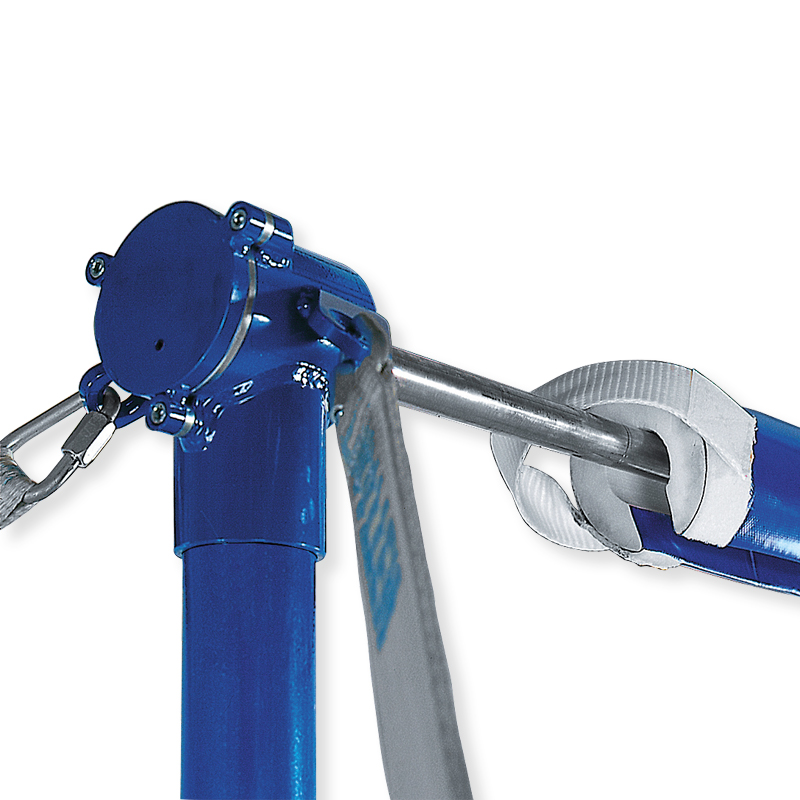 Als Zubehör erhältliche Druckverteilerplatten garantieren extrem hohe Standsicherheit auch auf punkt- und flächenelastischen Sporthallenböden. Reckstange aus massivem rostbeständigen Federstahl, die im Recksäulenkopf lagert.