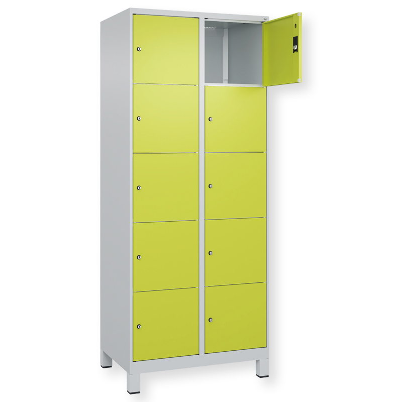 Schliessfachschrank Classic PLUS, 1 Abteil mit 5 Fächern, Abteilbreite 400 mm, Korpus aus stabiler Stahlkonstruktion mit hochwertiger Einbrennbeschichtung für hohe UV- und Korrosionsbeständigkeit, Türöffnungen 110 Grad, Türaufhängung rechts, Stahl-Türen mit Soft-Anschlag und geschlossenen Seitenprofilen für hohe Stabilität, Türaufhängung in stabilen Drehbolzen, 5 Zylinderschlösser mit 2 Schlüsseln, Schliesskreis bis 1000 verschiedene Schliessungen, 100 mm hohe Füsse aus Kunststoff für erweiterten Korrosionsschutz.