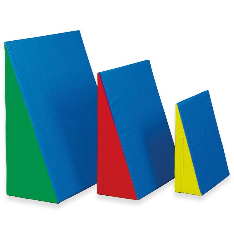 Die Schrägmatten sind flexibel einsetzbar als Trainingshilfe im Turnen, weiches Hindernis im Sportunterricht oder als Bausteine in Kindergarten und Co. Der Keil besitzt einen festen und elastischen Schaumstoffkern mit einem strapazierfähigen und hygienisch abwaschbaren Bezug. Der Überzug ist zudem profiliert für eine hohe Rutschfestigkeit.