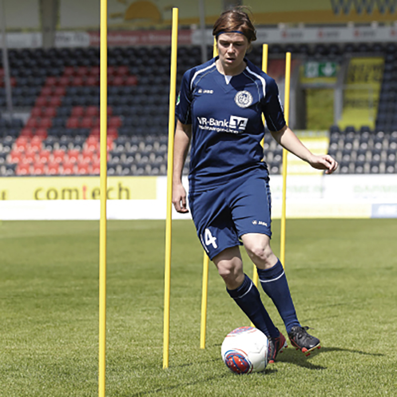 Optimales Trainingsequipment für Slalomtraining, Dribbeltraining, Schnelligkeitstraining und als Markierung von Trainingstoren. Die Metallspitze ermöglicht ein problemloses Einstecken in den Boden.