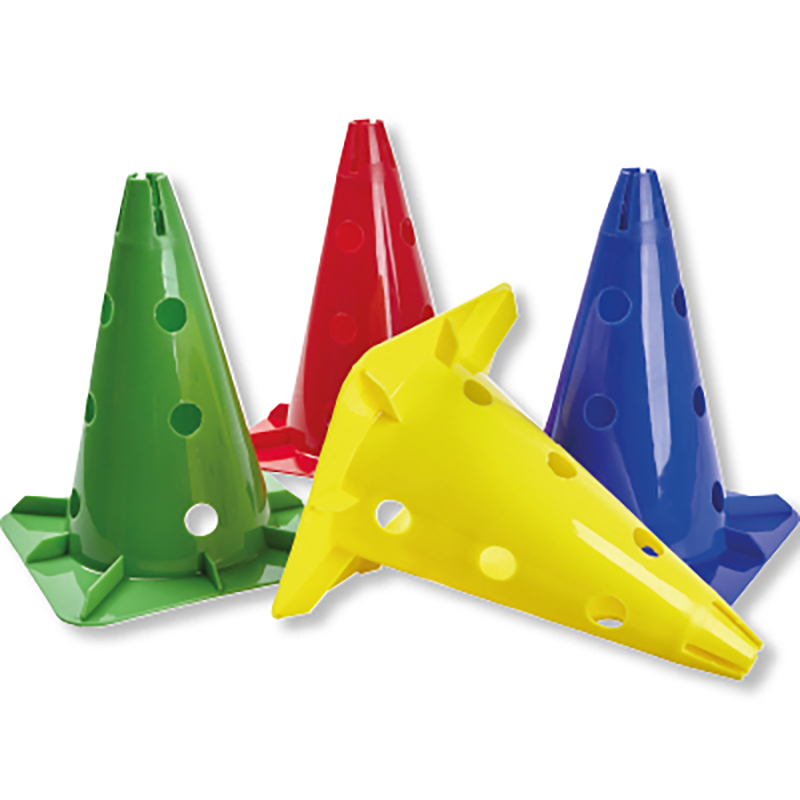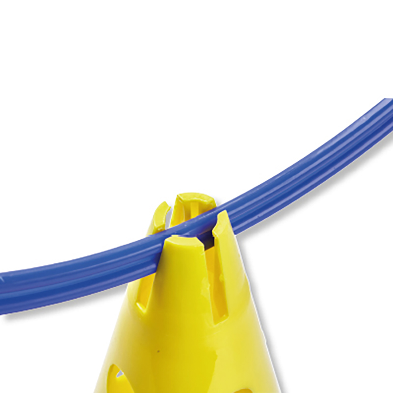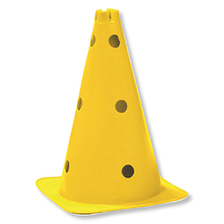 Dieser Lochkegel ist mit zwölf Löchern ausgestattet und kann in Kombination mit Turnstäben auch als Hürde, Slalomstange oder kleines Tor benutzt werden. Ausserdem kommen die Markierkegel gerne bei verschiedenen Teamsportarten in den Trainingseinheiten zum Einsatz. Vielfältige Übungsformen zu Koordination, Dribbling oder Beweglichkeit sind möglich.