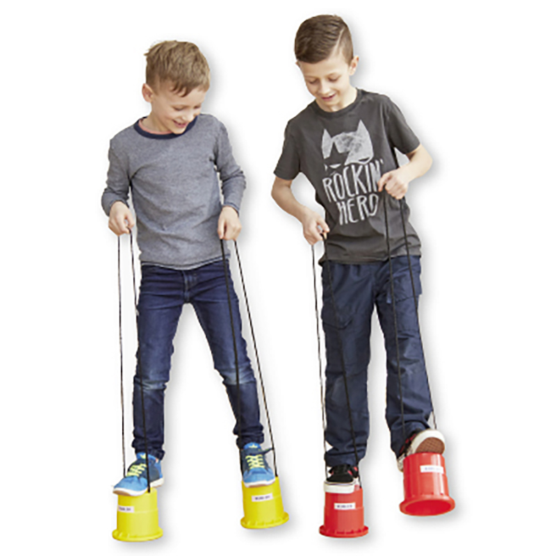 Mit den Topfstelzen (auch bekannt als Laufdosen) können sich Kinder hervorragend an das spätere Laufen auf richtigen Stelzen herantasten. Das Gehen auf den 12 cm hohen Kunststoff-Eimerchen trainiert das Gleichgewichtsgefühl und fördert die Feinmotorik. Dank dem verstärkten Laufrand sind die Laufdosen kippsicher und bis zu 70 kg belastbar. Die Seillänge lässt sich individuell an die Körpergrösse der Kinder anpassen. Geliefert werden die Topfstelzen paarweise in den jeweils vorhanden Farben. Geeignet sind sie für Kinder ab 3 Jahren in Kindertagestätten, Kindergarten oder in der Freizeit.