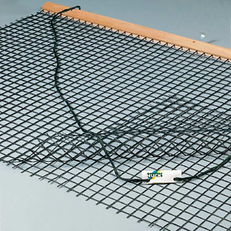 Aus beschichtetem Polyestergewebe, doppelte Netzlage. Maschenweite 4 x 4 cm. Netz 2 m breit, 1,40 m lang. Komplett mit Schleppholz und Schleppleine.