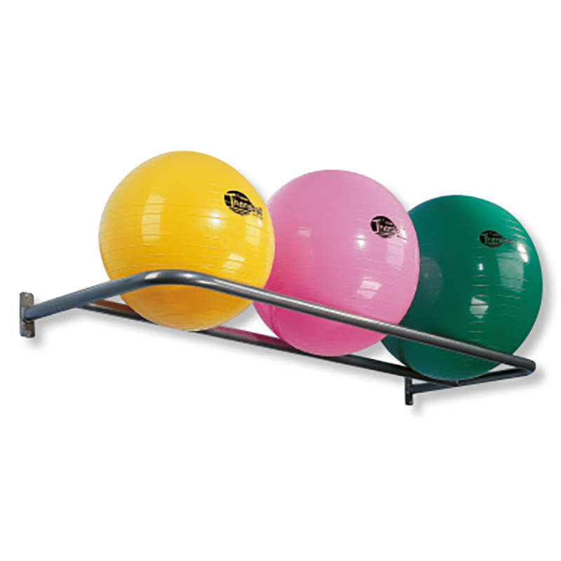 aus gebogenem Stahlrohr, pulverbeschichtet. Passend für 3 Bälle mit Ø 53 cm oder 65 cm oder für 4 Bälle mit Ø 42 cm. Belastung ca. 40 kg. T=54 cm, B=165 cm.