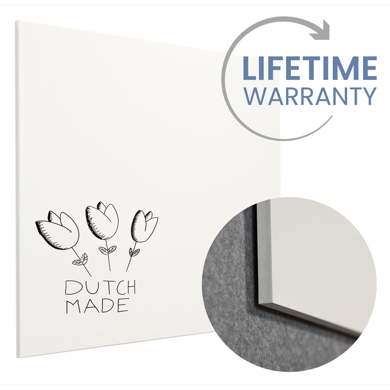 Dieses rahmenlose Whiteboard vereint Stil und Funktionalität. Die schlanke 10 mm Vollkerntafel aus hochwertigem, emailliertem Stahl ist magnethaftend, extrem kratzfest und bietet eine porenfreie, lebenslang beschreib- und trocken abwischbare Oberfläche. Das minimalistische Design mit geraden Ecken und weissen Rändern fügt sich nahtlos in Büros, Meetingräume oder Sporthallen ein. Dank der verdeckten Aufhängung gestaltet sich die Montage besonders einfach, wobei die Tafel sowohl im Hoch- als auch im Querformat angebracht werden kann. Die langlebige Emailleschicht wird bei 800 °C eingebrannt – für höchste Qualität und Beständigkeit.