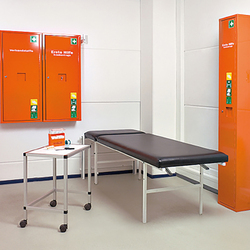 Sanitäts- und Ruheraumliegen werden nicht tagtäglich benutzt, müssen aber gemäß Arbeitsstättenverordnung ständig für den Notfall bereitgehalten werden. Eine platzsparende Lösung bietet jetzt die neue Wandklappliege. Diese Liege ist mit einem unkomplizierten Mechanismus ausgestattet, der es ermöglicht, die Liege platzsparend und gut gesichert gegen die Wand geklappt bereitzuhalten.