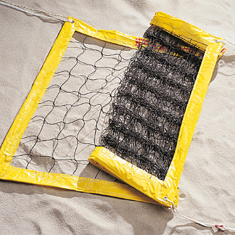 Das Netz kommt ringsum mit einem 75 mm breiten Einfassband in der gewählten Farbe und oben mit einem 11,70 m langem Stahlseil (Ø 3 mm).