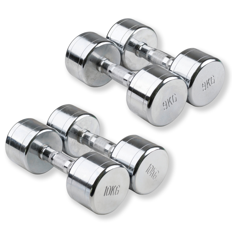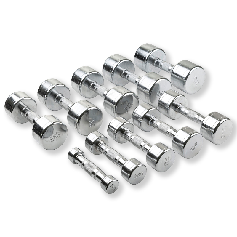 Der Hantelsatz ist aus verchromtem Stahl gefertigt, die Griffflächen der Hanteln sind gerändelt. Ideal für die Freihantelfläche in Fitness Studio und Verein, aber auch für Zuhause.
