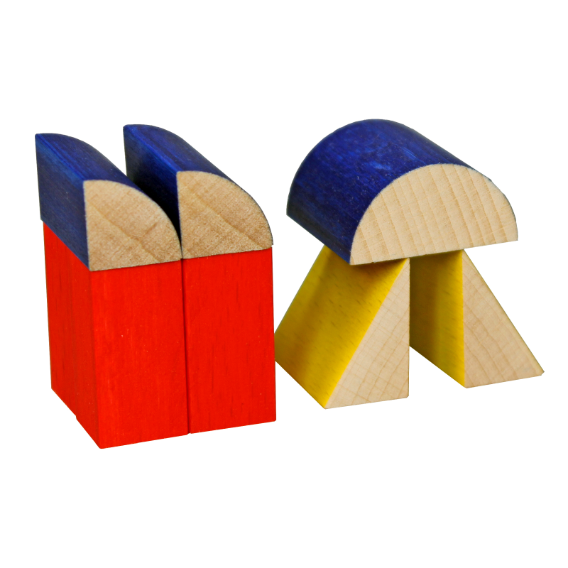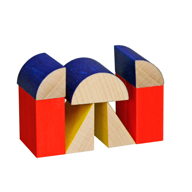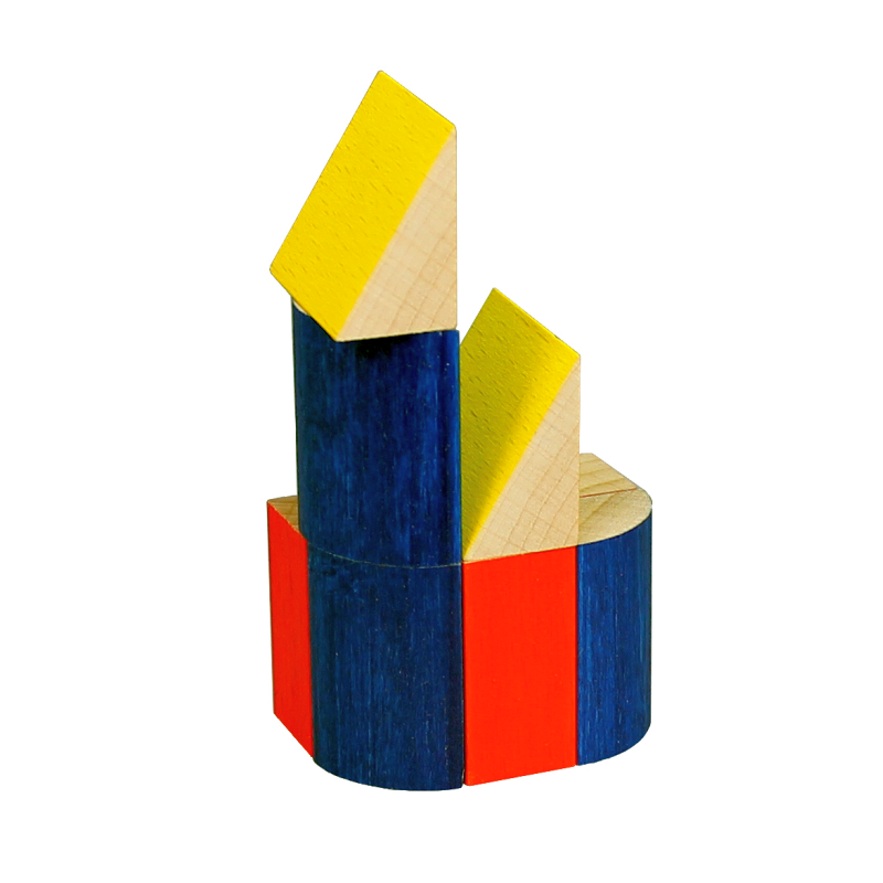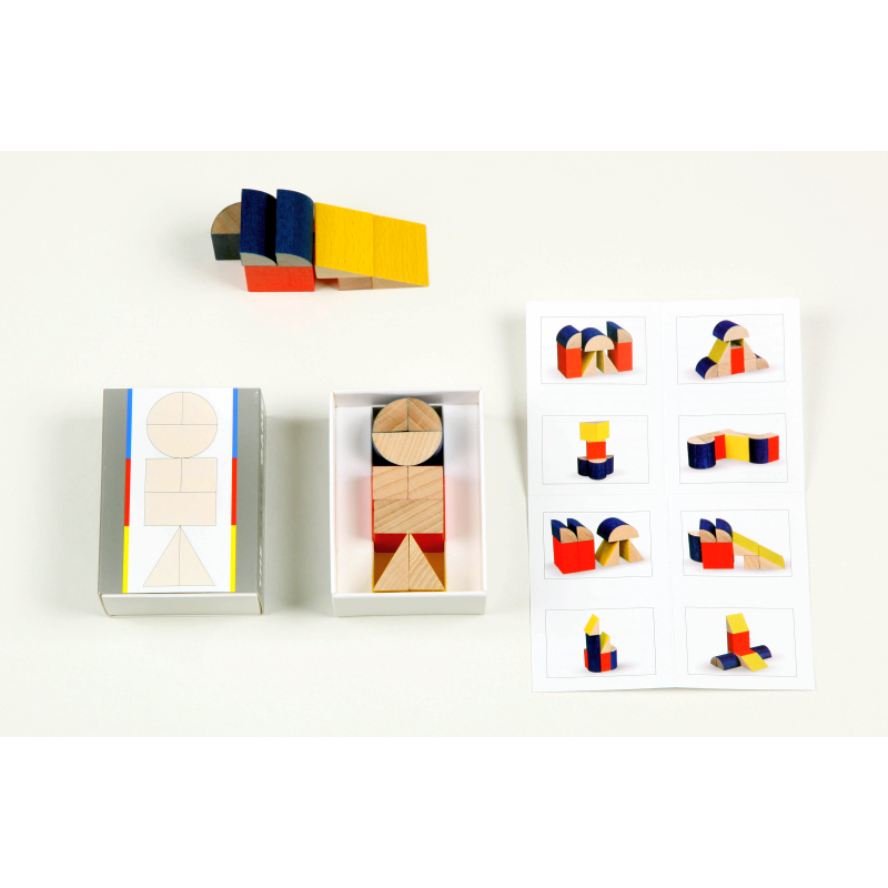 Ein kleines Bauspiel in den Grundformen und den Farben rot, gelb und blau – eine Kombination, die das Bauhaus bekannt machte.