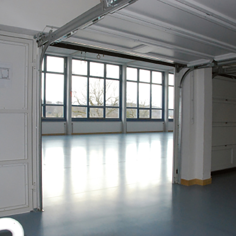 Dieser Tortyp ist bei Garagentoren längst zum Standard geworden. Ein Sektionaltor öffnet senkrecht nach oben und schwenkt weder nach aussen noch nach innen. Dadurch lässt sich der Platz im Geräteraum optimal nutzen.