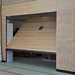Beim Gegengewichtstor Typ 32 mit Standardbeschlag befindet sich das Torblatt bei offenem Tor auf gleicher Höhe wie die Laufschienen. Auf Wunsch bieten wir auch eine Niedrigsturz-Lösung an.