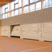 Für einen sicheren und präzisen Torlauf sorgen exakt austarierte Gegengewichte und kugelgelagerte, verschleissfeste Kunststoff-Laufrollen in der Laufschiene. Eine eingebaute, automatisch wirkende Absturzsicherung schützt im Falle eines Seilbruchs vor einem Torabsturz. An beiden Seiten des Tores sind Verriegelungen angebracht. Diese Zweifach-Verriegelung hält die Torfläche auch bei einem aufprallenden Sportler sicher verschlossen und verhindert so jegliche Einklemmgefahr.
