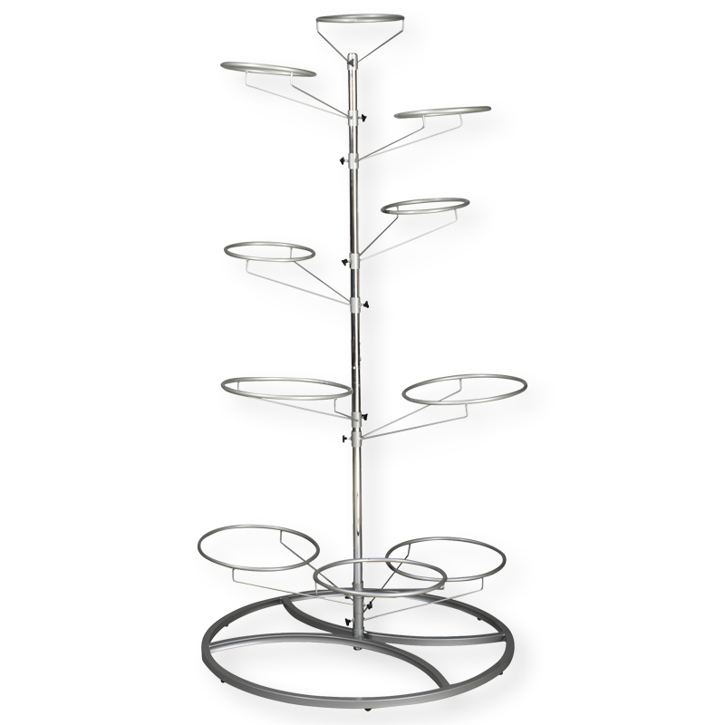 Dieser Gymnastikballständer lagert die Bälle vertikal und spiralförmig, sodass bis zu 10 Gymnastikbälle relativ platzsparend aufbewahrt werden. Die 10 Aufnahmeflächen sind rotierbar und höhenverstellbar.
