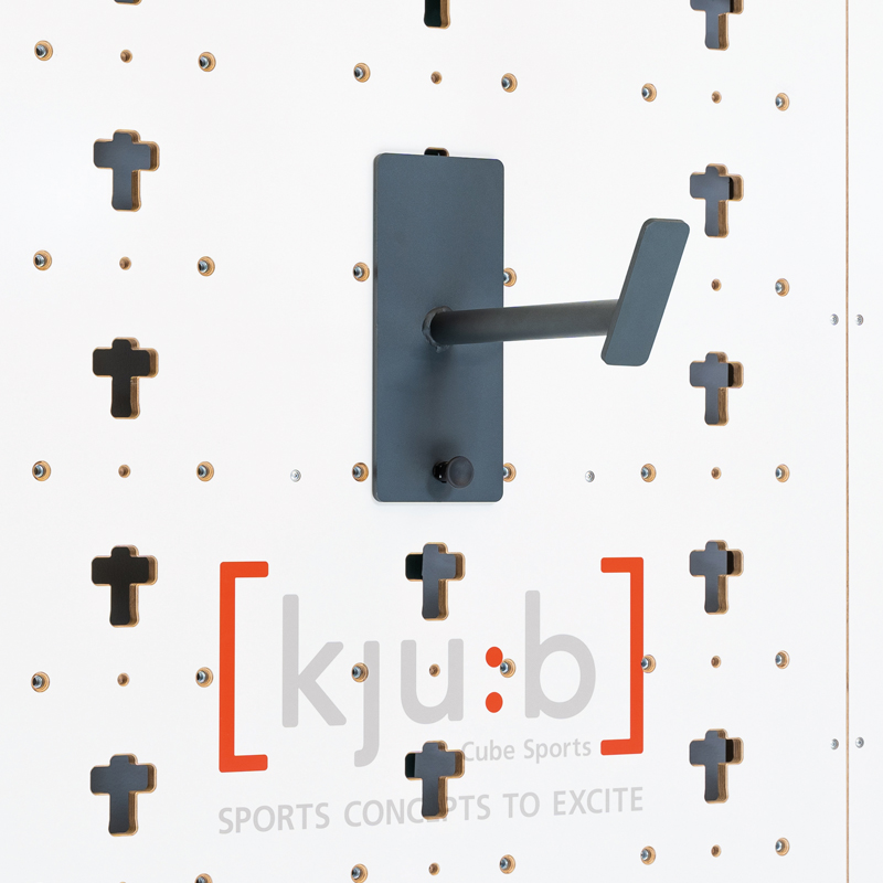 Aufbewahrungsmöglichkeit für Battle Rope, Seile, Bänder und weiteres Equipment. Dient auch als horizontale Ablage für Langhanteltrainer.