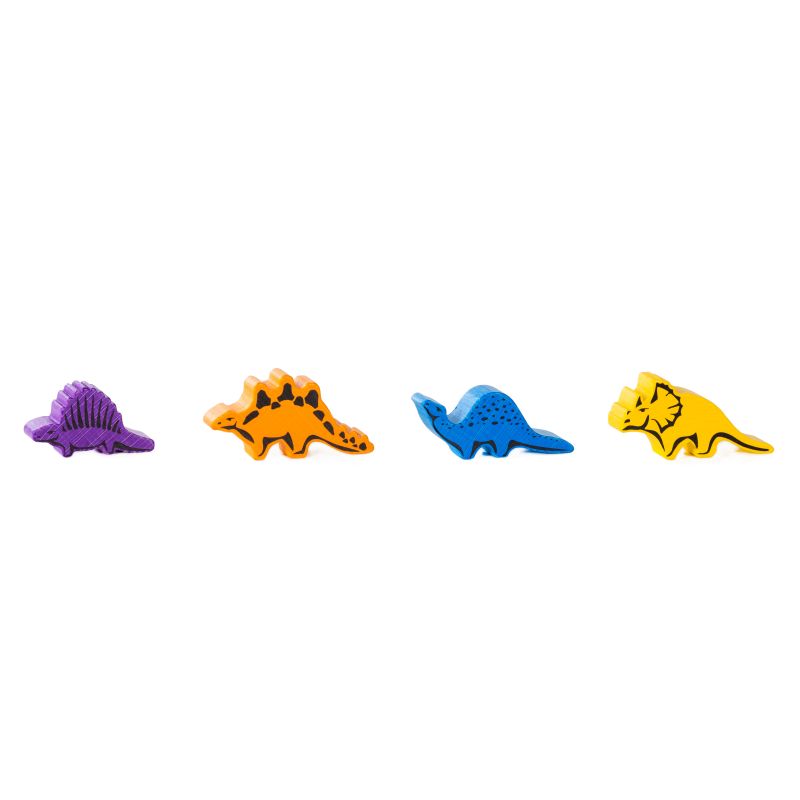 Unsere Dinosaurier beleben nicht nur als Rollenspielzeug jedes Kinderzimmer. Die Formen der einzelnen Saurier sind so harmonisch aufeinander abgestimmt, dass Sie sich sogar als Stapelspielzeug eignen. Besonders kreative Kinder erschaffen auch farbenfrohe Mandalas, indem die Dinos kreisförmig aneinandergelegt werden.