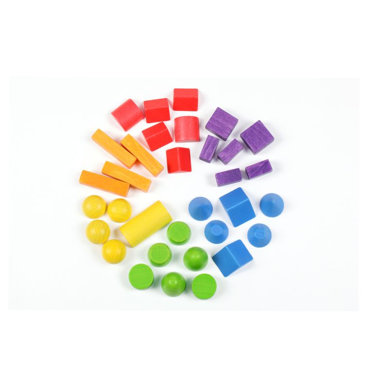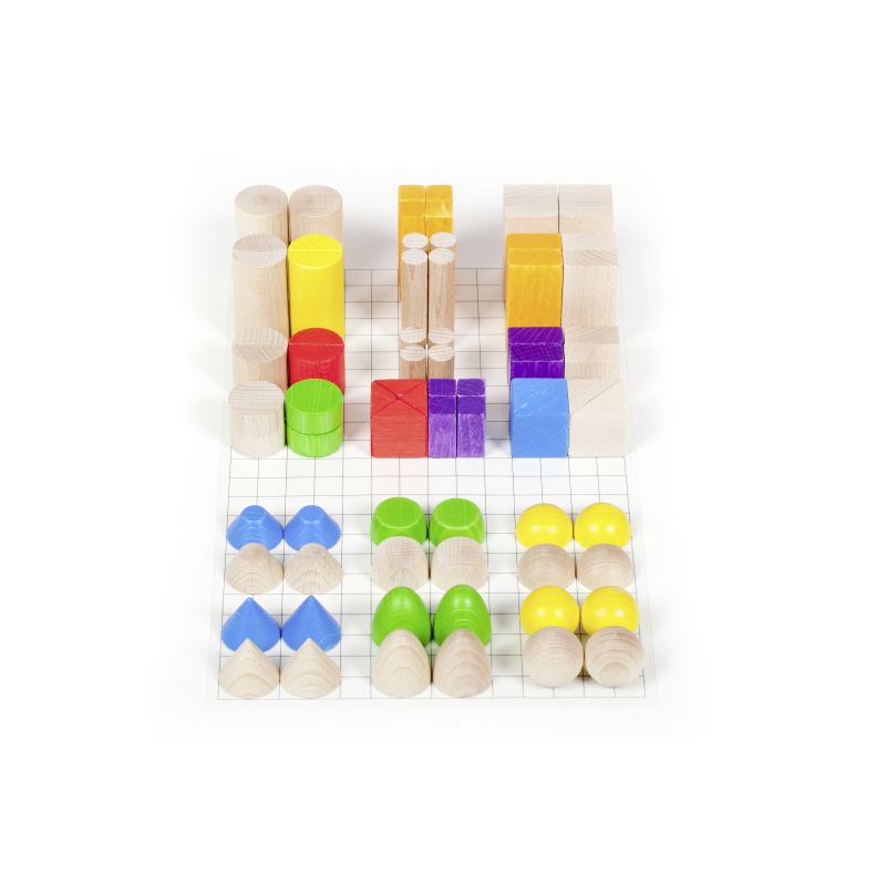 „Ist das Bauen mit Fröbel Spielmaterial noch zeitgemäss?“ Genau dieser Frage haben wir uns angenommen mit dem Ziel eine moderne Baustein-Sortierung zu konzeptionieren, die sowohl dem streng mathematischen Leitbild der Fröbelpädagogik folgt, als auch das freie künstlerische Denken und Gestalten fördert. Ergebnis unserer Entwicklung ist dieses Bauspiel, bestehend aus den klassischen Fröbel-Grundkörpern Kugel, Walze, Würfel und deren Teilungen ergänzt durch: Scheibe, Halbkugel, Kegel, Kegelstumpf, Paraboloid und Paraboloidstumpf. Neben dem freien Bauen können die Kleinen auch exakt nach Raster gestalten und planen. Dabei dient die mitgelieferte Rasterfolie als Kopiervorlage. Gerade bei dieser Spielvariante lernen Kinder die mathematischen Bezüge der einzelnen Körper zueinander besser zu verstehen.