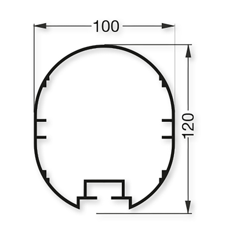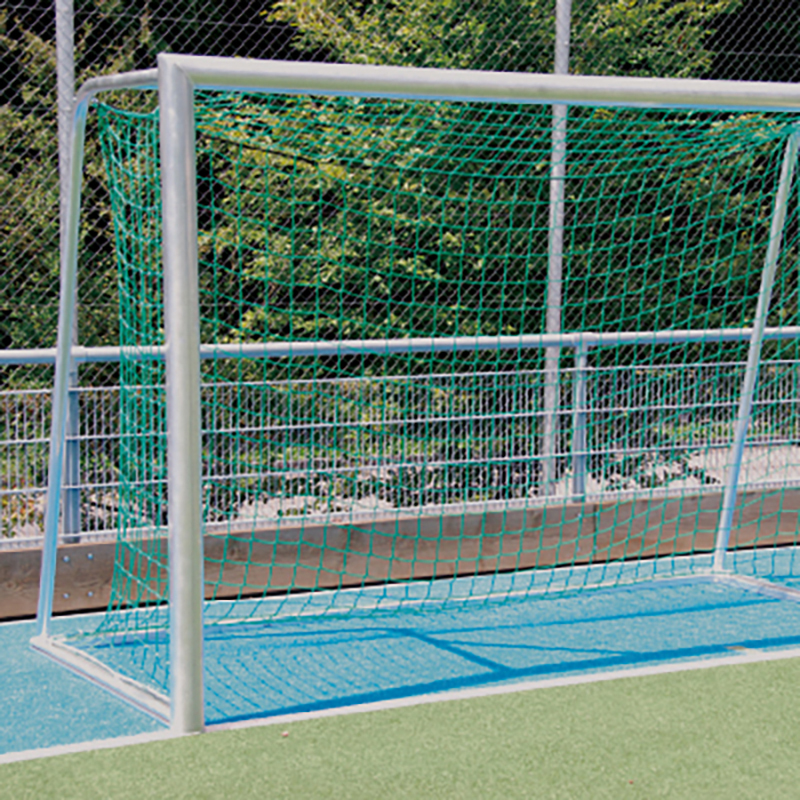 Latte und Pfosten aus dickwandigem Ovalprofil 120 x 100 mm mit Innenversteifung fest miteinander verschweisst. Netzbügel aus Alu-Rundrohr 50 x 4 mm. Die seitlichen Verstrebungen sind ebenfalls mit dem Torrahmen verschweisst. Tortiefe unten 1.50 m.