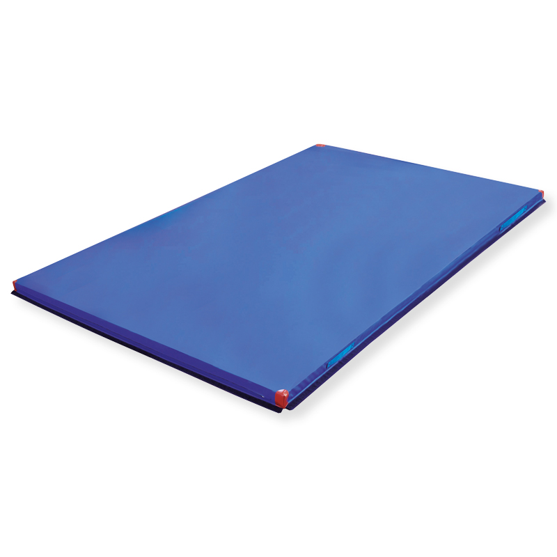 Für zusätzliche Sicherheit und Stabilität lässt sich die Matte über Längs- und Querlappen sowie ein Klettband auf der Unterseite zuverlässig mit anderen Matten oder einer Weichsprungmattenhülle verbinden.