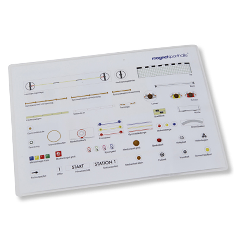 Die Magnetsporthalle hilft, geplante Geräteaufbauten schnell und verständlich zu vermitteln und versetzt Schüler in die Lage diese selbstständig umzusetzen. Jedem Set ist eine laminierte Legende beigefügt. Set A: Basiselemente: Turnbänke, Weichböden, Sprungkästen, etc. Set B: Erweiterungselemente: Hochsprungständer, Hochsprunganlage, etc. Lieferung ohne Magnettafel, bitte separat bestellen.