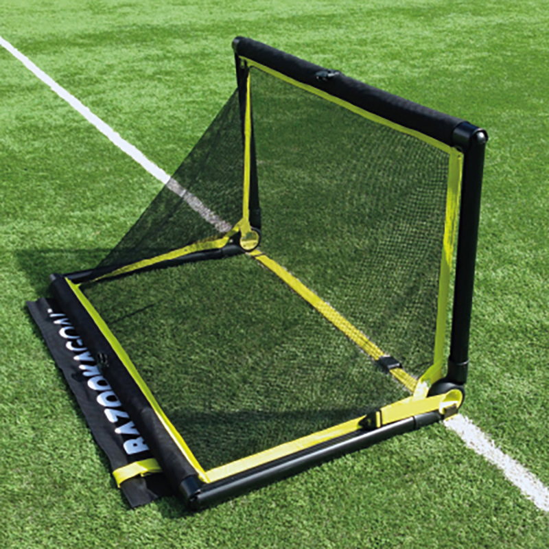 Das BazookaGoal Original ist das perfekte Fussballtor für den Profisport und Freizeitzwecke. Das Minitor (quasi Pop-Up Tor) hat den grossen Vorteil, dass es aufgrund seiner Grösse und seinem geringen Gewicht (5 kg) super leicht zu transportieren ist, ganz ohne zusätzliche Tasche. Das Fussballtor ist teleskopartig zusammenklappbar und in diesem Zustand 150 cm lang und mittels dem Tragegurt ganz leicht zu transportieren oder zu verstauen. Die ideale Tor-Lösung für Fussball Trainingsformen und den Garten. Die BazookaGoal Fussballtore lassen sich innerhalb von etwa 5 Sekunden auf- und abbauen. Das extrem platzsparende Minitor ist kinderfreundlich, dank des integrierten Springfedersystems. Dadurch dass das Fussballtor nach hinten nachgeben kann, ist eine Verletzungsgefahr minimiert und von daher besonders im Kinder-Fussball geeignet. Das Tor vielseitig einsetzbar, Rasen, Kunstrasen, Asphalt oder in der Halle, und wird auch im Profi-Fussball eingesetzt. Tolles Training- & Minitor mit Quick Play Funktion.