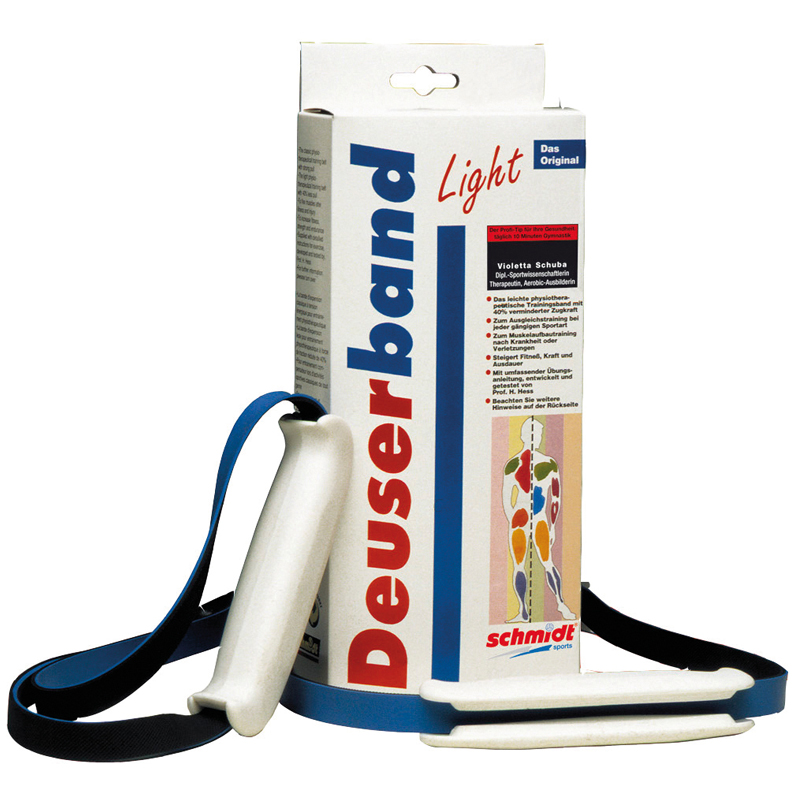 Das Trainingsband von Deuser ist der Klassiker seit 1967 und wird seit vielen Jahren von Sportlern, Athleten, Physiotherapeuten und sportbegeisterten Menschen eingesetzt. Damit für Jedermann das richtige Trainingsband verfügbar ist, gibt es das Deuserband in 2 verschiedenen Stärken. Das Deuserband light hat eine um 40 % verminderte Zugkraft gegenüber dem Deuserband Original.