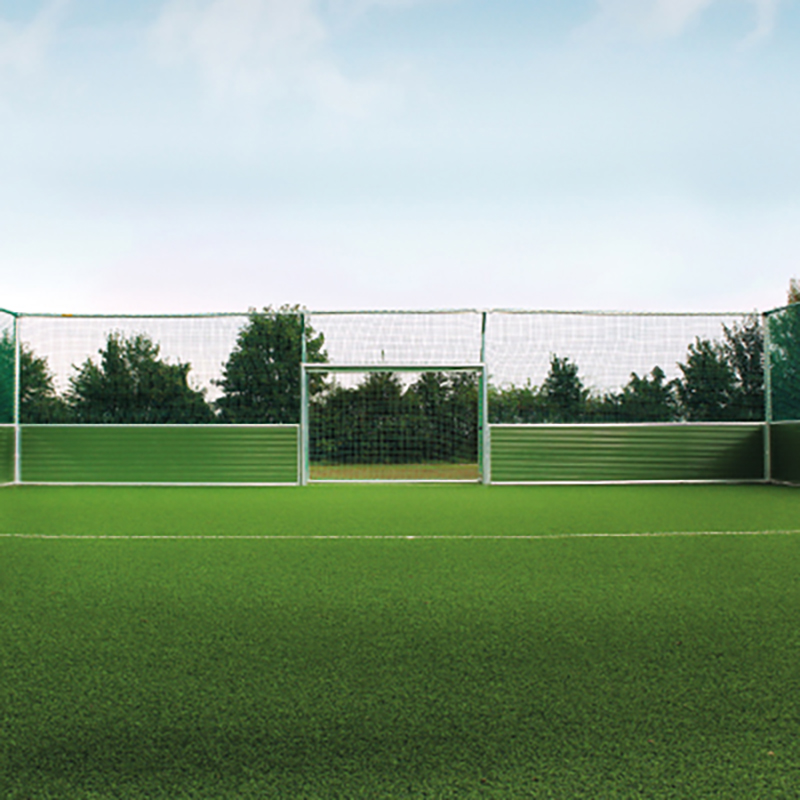 - Grundausstattung: Umlaufendes Bandensystem, 2 Fussballtore + Netze, 2 Zugangstüren + Netze