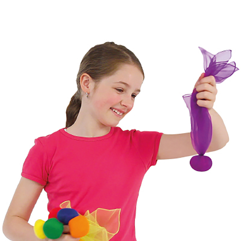 Mit den Wurfsäckchen sind spannende Team- und Gruppenspiele im Sport- oder Freizeitunterricht möglich. Durch das angehängte Chiffon Tuch verlangsamt sich die Flugphase und ist leichter zu fange. Ideal also für viele Fang- und Wurfspiele.
