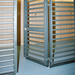 Doppelfeld 180cm breit ausschwenkbar um 90°. Arretierung mit Exzenterverriegelung in Kunststoff-Bodenplatte.