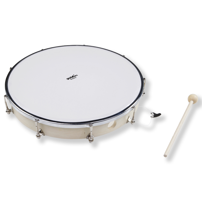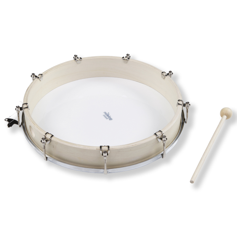 Der Korpus der Rahmentrommel besteht aus Holz und ist sehr gut verarbeitet. Das Tamburin ist mit einem Kunststofffell überzogen, welches spannbar ist. Es ist in verschiedenen Grössen erhältlich.