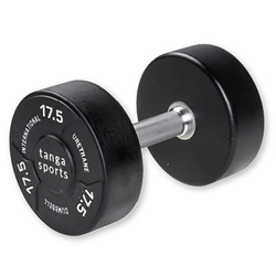 Kompakthantel von tanga sports® mit einer verchromten Hantelstange und gummierten Gewichtsblöcken. Ideal für den Einsatz im Fitnessstudio oder beim Heimtraining.