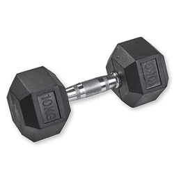 Der verchromte und gerändelte Stahlgriff bringt die benötigte Stabilität und Griffigkeit mit sich, die gummierten Gewichtsblöcke bieten Sicherheit beim Fallen für Boden und Hantel.